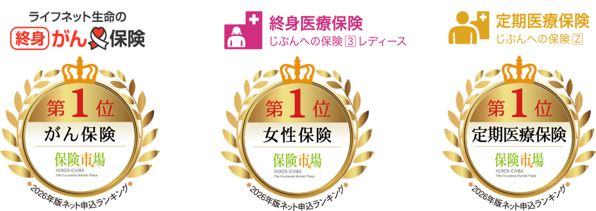 「保険市場」の『2026年版 最も選ばれた「保険ランキング」』において、「ライフネット生命の終身がん保険」が「生命保険(ネット申込)がん保険ランキング」で5年連続第1位、終身医療保険「じぶんへの保険3レディース」が「生命保険(ネット申込)女性保険ランキング」で3年連続第1位、定期医療保険「じぶんへの保険Z」が「生命保険(ネット申込)定期医療保険ランキング」で2年連続第1位を受賞しました※。