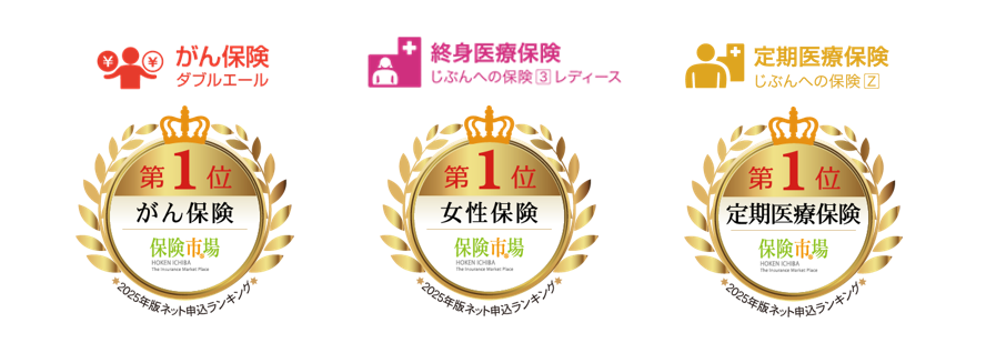 「保険市場」の『2025年版 最も選ばれた「保険ランキング」』※1において、がん保険「ダブルエール」が 「生命保険(ネット申込)がん保険ランキング」で4年連続第1位、終身医療保険「じぶんへの保険3レディース」が「生命保険(ネット申込)女性保険ランキング」で第1位、また、定期医療保険「じぶんへの保険Z」は「生命保険(ネット申込)定期医療保険ランキング」で初めて第1位を受賞しました。※2